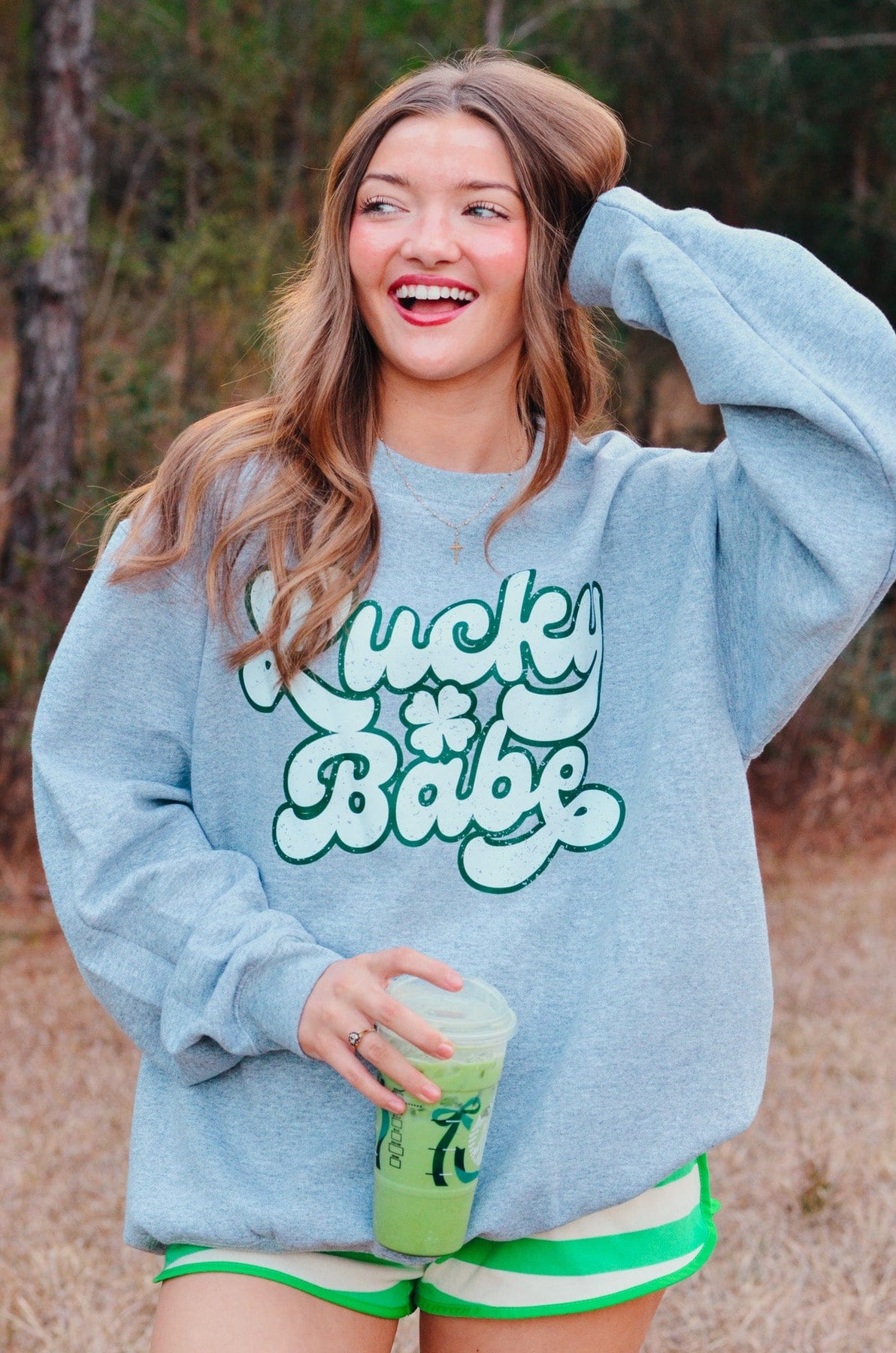 Embrace your inner lucky charm with the Lucky Babe Sweatshirt—your new go-to for St. Patrick's Day shenanigans and beyond! This cozy pullover combines comfort with personality, featuring a fun design that celebrates all things lucky and festive. Soft fabric keeps you warm while you're out celebrating, whether you're hitting the parade, gathering with friends, or just spreading good fortune wherever you go. The relaxed fit makes it perfect for layering or wearing solo, giving you endless styling options. From casual days to holiday parties, this sweatshirt is your lucky ticket to looking effortlessly cool and feeling absolutely fabulous!