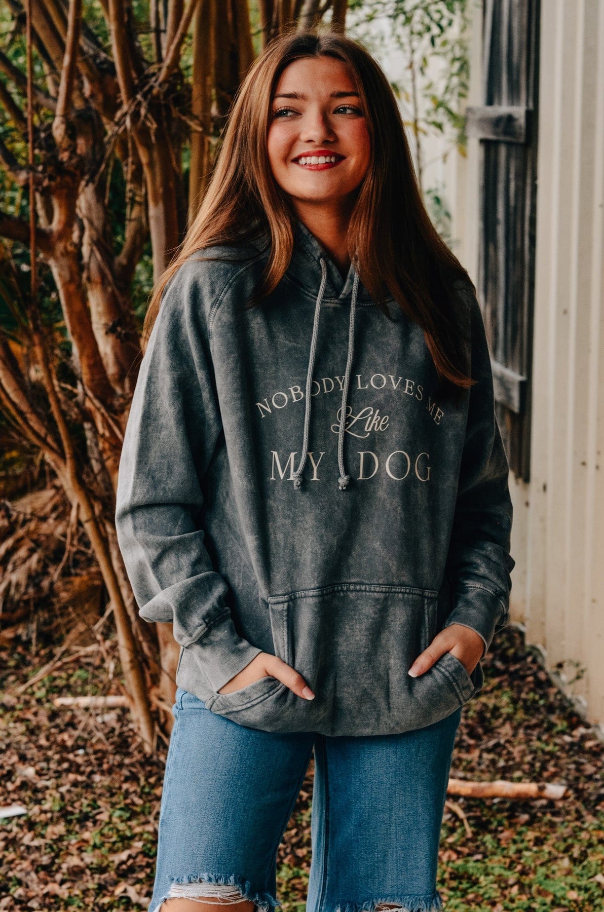Wrap yourself in the unconditional love of your furry best friend with this cozy gray hoodie. Perfect for dog lovers who know that nobody—absolutely nobody—shows affection quite like a pup. Soft, comfortable, and featuring a heartwarming message that celebrates the special bond between you and your four-legged companion. Whether you're lounging at home or running errands, this hoodie is your wearable reminder of pure, tail-wagging devotion. Because let's face it, your dog's love is the real deal.