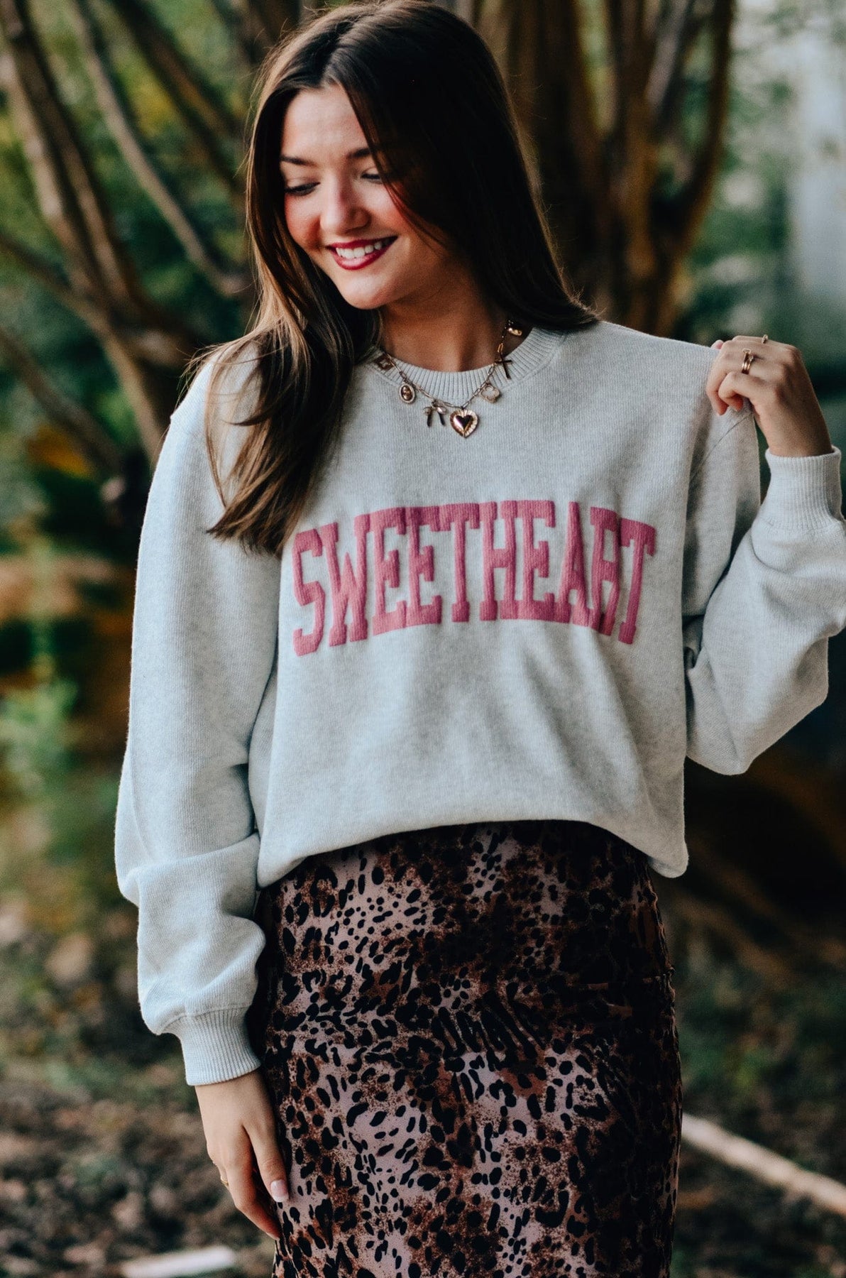Sweetheart Heather Oatmeal Knit Sweatshirt