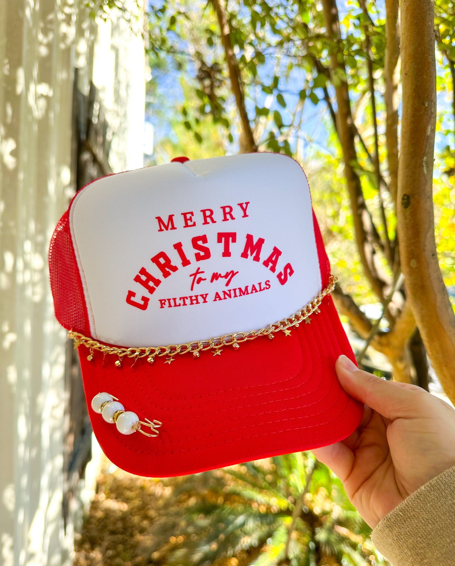 White & Red Foam Trucker Hat – Merry Christmas To My Filthy Animals