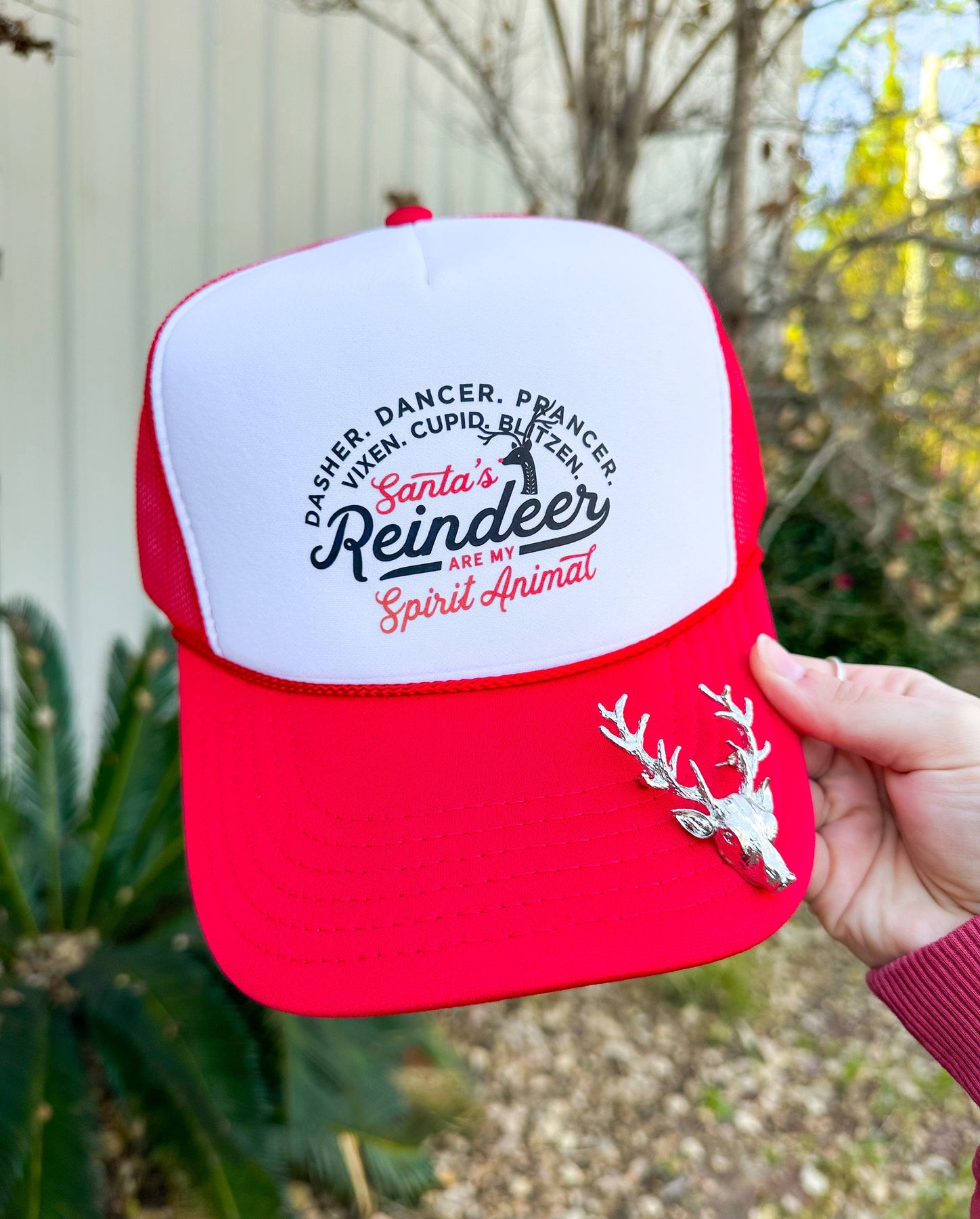 White/Red Foam Trucker Hat - Santa's Reindeer Are My Spirit Animal